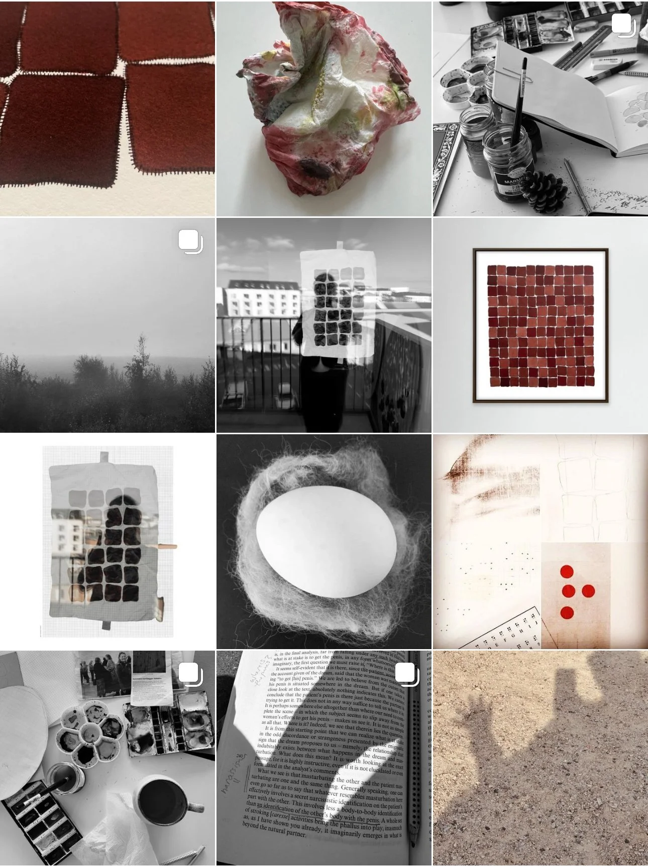 The work unfolds through sustained acts of attention and prolonged, repetitive contact with material surfaces shaped by time. Drawing functions as a primary mode, extended through processes including fresco-related stencils, abrasion, piercing and inscription, pyrography, sewing, and embroidery. Lines and marks emerge through pressure, resistance, and interruption, produced through constraint and duration rather than gesture or image.